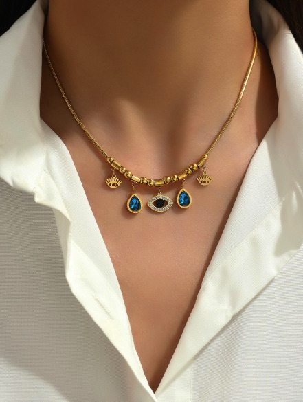 Eye & Rhinestone Decor pendant, Brand New, Stainless steel